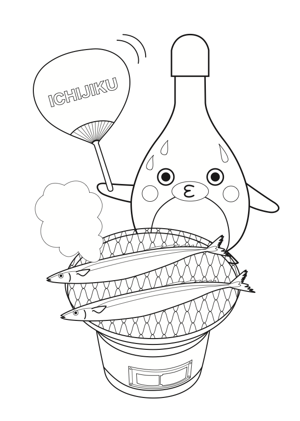 かんちゃんが美味しそうなサンマを七輪で焼いているよ。