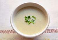ごぼうと豆乳を使用した簡単にできるポタージュをご紹介。ちょっぴり土臭く、離乳食には敬遠してしまいがちなごぼうですが、食物繊維はたっぷりで便秘解消には大変効果的。そこで今回は、そんなごぼうに豆乳とジャガイモを加え、もったりとピュレ状に仕上げて食べやすくしました。赤ちゃんがスプーンで食べられる一品です。