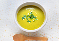 4.かぼちゃが柔らかくなったらミキサーにかけ、塩を適量加えてそのまま冷やす。豆乳を少しずつ加えてよく混ぜ、器に盛れば出来上がり!