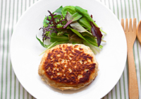 5.フライパンにオリーブオイルを敷き、火にかける。4.を三~四等分し、形を整えて焼く。