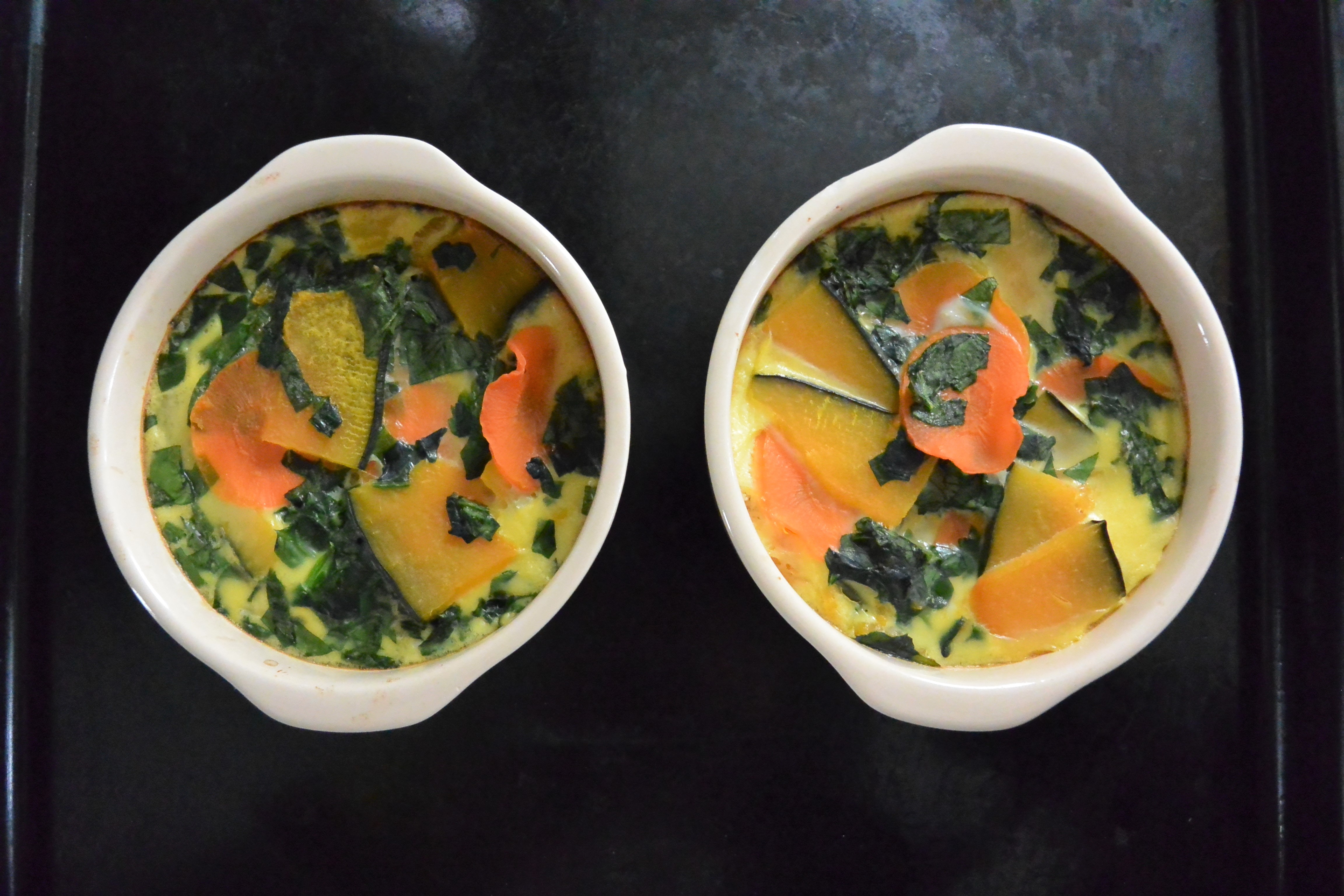 3.2. にボウルで混ぜておいた卵液を注ぎ、200℃に予熱したオーブンで20分ほど焼けば出来上がり!