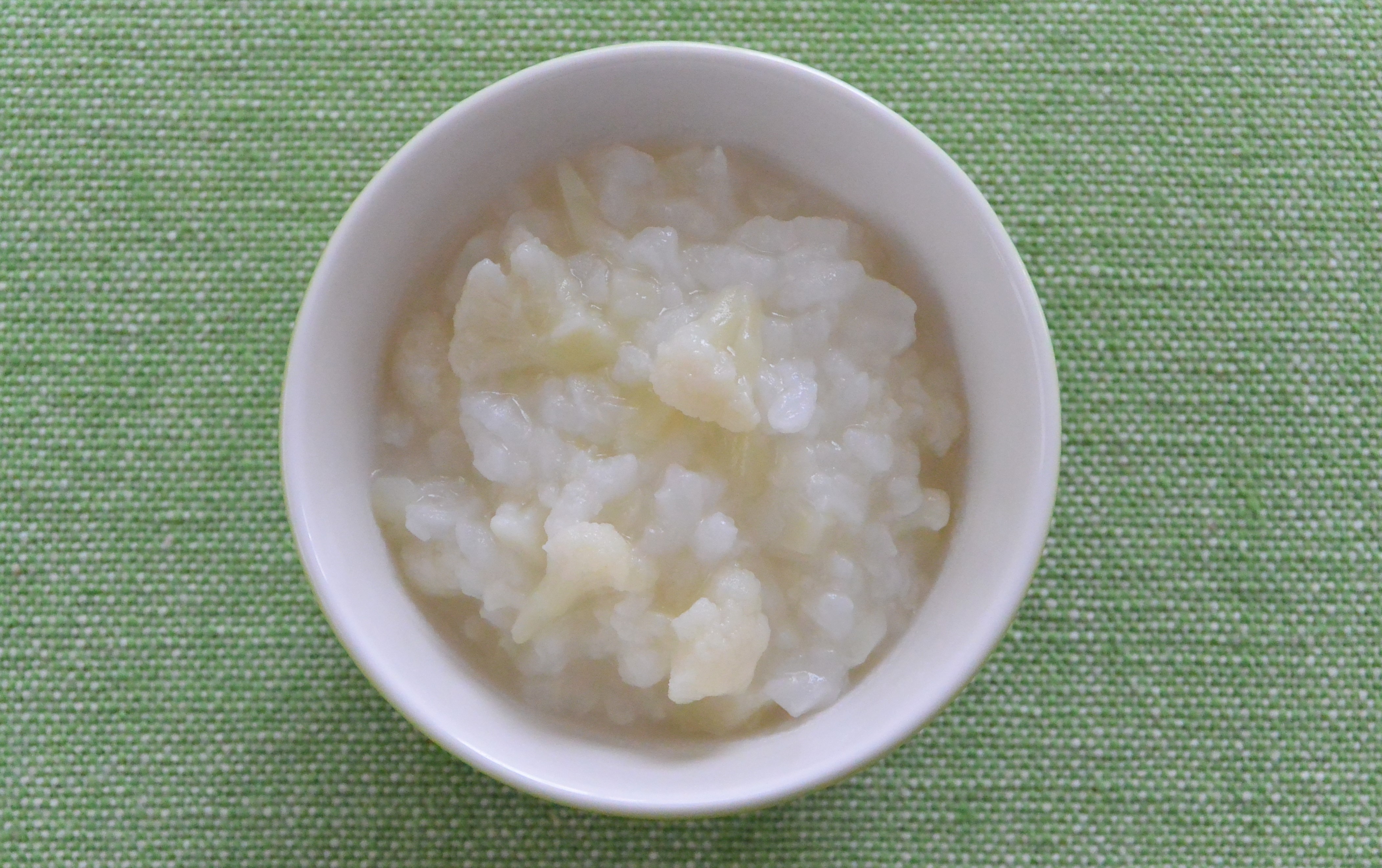 ほんのりやさしい甘味があるカリフラワーをお米と一緒に煮こみます。お粥は、お米からでも、ごはんからでも作れます。粉ミルクや牛乳を加えてミルク粥にしてもおいしいですよ。