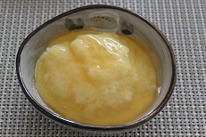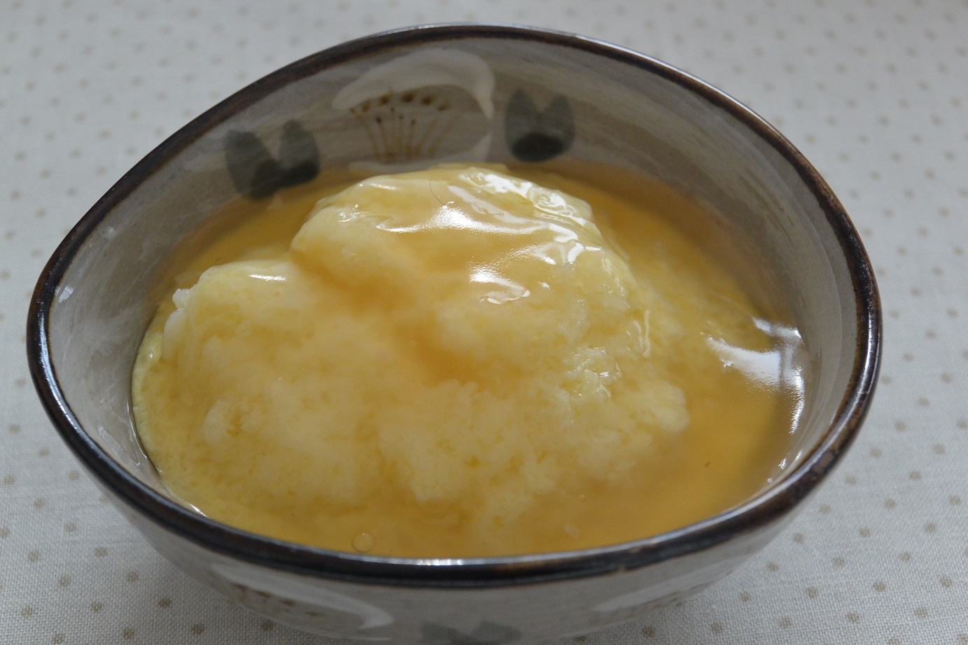 卵黄で作る赤ちゃん向けのかぶら蒸しです。大人は通常の卵白を使うかぶら蒸しにして、赤ちゃん用をこちらにすると卵を余すことなく使えます。