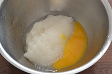 1. 小かぶは葉を落として皮をむいてすりおろし、卵黄と混ぜる。